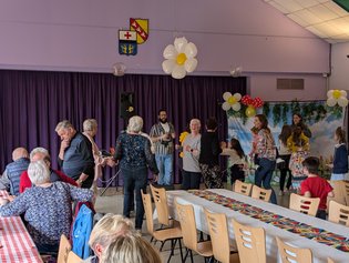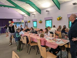 Dimanche 30 mars, parents et enfants sont venus accueillir le printemps par une fête en notre salle polyvalente. Fête charmante et enthousiaste menée par Mika, brillant animateur. Au programme : musique, chansons, danses, jeux …. pour le plaisir des petits et des grands !