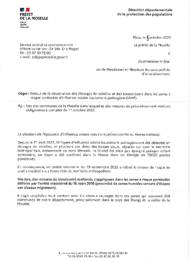 13 octobre 2022Influenza aviaire